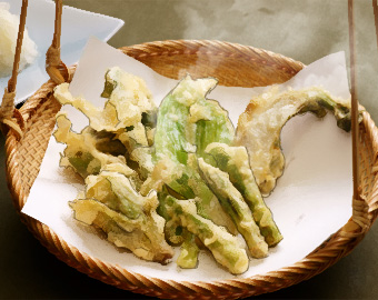 おひたしなどにする場合はいずれもアク抜きをして使いますが、天ぷらの場合はそのまま衣をつけて揚げてしまいます。するとある程度アクは抜け、ほのかな苦みを逆に旨みとして楽しんでいただけるんです。